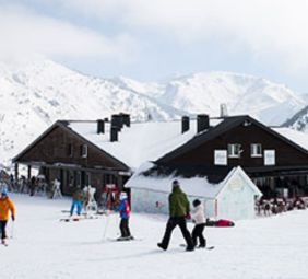 Cafetería alpina situada a casi 2.000 m, junto al telesilla Rey Juan Carlos. Ideal para descansar con café, caldo o bocadillos, y disfrutar de su terraza con vistas al macizo de los Lecherines y el Aspe.